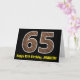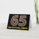 La façade de cette carte de voeux amusante et rustique d'anniversaire avec un grand nombre de "65" avec un faux motif de style à grain de bois, avec le message "Happy 65th Birthday," et un nom personnalisé. L'intérieur comporte un message de voeux d'anniversaire personnalisable, ou peut-être pourrait-il être effacé et laissé vide si un message doit être écrit à la main à la place. Une carte d'anniversaire personnalisée comme celle-ci pourrait être une façon amusante d'envoyer des voeux d'anniversaire à quelqu'un qui célèbre son soixante-cinquième anniversaire. [~Z0000431]