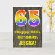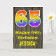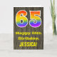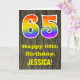La façade de cette carte de voeux colorée et rustique d'anniversaire comporte un grand nombre de "65" avec un dégradé de arc-en-ciel inspiré motif, avec le message "Happy 65th Birthday," et un nom de destinataire personnalisé. L'arrière - plan de l'avant de la carte est orné d'un motif d'inspiration rustique en faux bois. L'intérieur comporte un message de voeux d'anniversaire modifiable, ou peut-être pourrait-il être effacé et laissé vide si un message doit être écrit à la main à la place. Une carte d'anniversaire personnalisée comme celle-ci pourrait être une façon amusante d'envoyer des voeux d'anniversaire à quelqu'un qui célèbre son soixante-cinquième anniversaire. [~Z0000419]