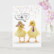 De mignons canards jaunes avec bulle vocale et confettis de fête sur un arrière - plan blanc pour 65ème anniversaire. Le canard porte une ficelle de perles et un bonnet. Le petit canard porte une cravate rayée. Tout le texte peut être modifié. L'âge est modifiable. La couleur Arrière - plan peut être modifiée.