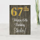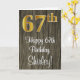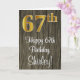 Ce design luxueux, élégant et élégant de carte de voeux d'anniversaire comporte un grand numéro ordinal "67th" avec une imitation/faux look or, plus le message de voeux d'anniversaire "Happy 67th Birthday", et un nom personnalisé dans une police de style script sur le devant. L'arrière - plan du devant a un motif d'inspiration imitation bois. L'intérieur a un message de voeux d'anniversaire customisé, ou peut-être peut-être être effacé et laissé vide si un message doit être écrit à la main à la place. Une carte de voeux d’anniversaire sophistiquée comme celle-ci pourrait être utilisée pour souligner le soixante-septième anniversaire de quelqu’un. [~Z0000519]
