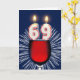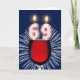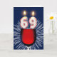 Un verre de vin d'anniversaire avec des bougies. Les bougies sont composées du numéro 69, pour un 69ème anniversaire. Les feux d'artifice explosent dans l'arrière - plan. Une carte d'anniversaire adaptée à tous, hommes ou femmes.