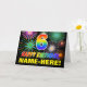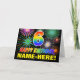 La façade de cette carte de voeux colorée, amusante et joyeuse à thème d'anniversaire comporte un grand numéro "6" et le message "HAPPY BANTHDAY", tous deux colorés avec un motif inspiré par un gradient de spectre arc-en-ciel, ainsi qu'un nom de destinataire personnalisé jaune gras. Le devant est également orné d'un motif arrière - plan multicolore, inspiré par des feux d'artifice. L'intérieur comporte un message d'anniversaire personnalisé, ou pourrait être effacé et laissé vide si un message doit être écrit à la main à la place. Une carte d'anniversaire comme celle-ci pourrait être une façon amusante d'envoyer des voeux d'anniversaire à quelqu'un qui célèbre son sixième anniversaire. [~Z0000471]