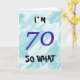 Une superbe carte de voeux drôle et motivationnelle pour quelqu'un qui fête son 70e anniversaire. Elle est accompagnée d'une citation drôle J'ai 70 ans et alors ?, et est parfaite pour une personne avec un sens de l'humour.