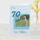 Une grande carte de voeux pour quelqu'un célébrant son 70e anniversaire. Il est livré avec une citation drôle et motivationnelle I`m 70 So What.., et est parfait pour une personne avec un sens de l'humour. Il est livré avec une photo que vous pouvez changer. Vous pouvez également modifier le numéro d'année.