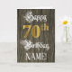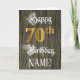 Le recto de cette carte de voeux ornée et fantaisiste comporte le message "Joyeux 70e anniversaire", ainsi qu'un nom de destinataire personnalisé. Une partie du message est en texte de style script élaboré. Le grand numéro "70th" présente un motif de look imitation or. L'arrière - plan a un motif imitation/imitation à grains de bois. L'intérieur a un message de voeux d'anniversaire customisé, ou peut-être peut-être être effacé et laissé vide si un message doit être écrit à la main à la place. Une carte de voeux d’anniversaire élégante et customisée comme celle-ci pourrait être utilisée pour souligner le soixante-dixième anniversaire de quelqu’un. [~Z0000561]