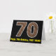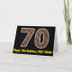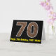 L'avant de cette carte de voeux amusante et à thème rustique comprend un grand nombre de "70" avec un motif de style imitation grain de bois, avec le message "Happy 70th Birthday," et un nom personnalisé. L'intérieur comporte un message de bienvenue personnalisable, ou peut être effacé et laissé vide si un message doit être écrit à la main à la place. Une carte de voeux personnalisable comme celle-ci pourrait être une façon amusante d'envoyer un message pour célébrer le soixante-dixième anniversaire de quelqu'un. [~Z0000431]