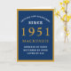 Carte 70e anniversaire personnalisé 1951 Blue Gold Chic