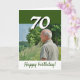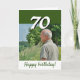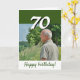 Carte photo vert 70e anniversaire. Carte de voeux personnalisée pour 70e anniversaire pour quelqu'un célébrant 70e anniversaire. Insérez votre photo dans le modèle. Vous pouvez également modifier le numéro d'âge.