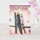 Deux espions en bois sont entaillés sur une corde et penchent affectueusement l'un vers l'autre avec un arrière - plan de coeur bokeh pour un 70e anniversaire de félicitations.