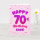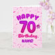Celebrate their 70th birthday with a bright, cheerful, and personalizable birthday card! This custom name birthday card features a bold number seventy balloon and colorful confetti.