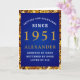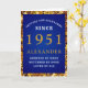 Carte 70th Birthday Born 1951 Gold Blue Ajouter Votre No