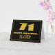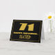L'avant de ce style vintage et du style des années 1920/1930 inspiré par le thème d'anniversaire de conception de cartes de voeux comprend un grand style art déco inspiré du numéro "71", le message "HAPPY BANTHDAY", un nom modifiable, et un motif de frontière composé de lignes. L'avant est également orné d'un arrière - plan noir. L'intérieur comporte un message de voeux d'anniversaire customisé, ou peut-être pourrait-il être effacé et laissé vide si un message doit être écrit à la main à la place. Une carte d’anniversaire personnalisée comme celle-ci pourrait être une façon amusante d’envoyer un message pour célébrer le soixante-et-onzième anniversaire de quelqu’un. [~Z0000506]
