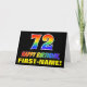 Le devant de cette carte de voeux colorée, amusante et joyeuse à thème d'anniversaire comporte un grand numéro "72" et le message "HAPPY BANTHDAY", tous deux colorés avec un motif inspiré par un gradient de spectre arc-en-ciel, ainsi qu'un nom de destinataire modifiable jaune en gras. L'avant a aussi un arrière - plan clair, minimal et noir. L'intérieur comporte un message d'anniversaire personnalisé, ou pourrait être effacé et laissé vide si un message doit être écrit à la main à la place. Une carte d'anniversaire comme celle-ci pourrait être une façon amusante d'envoyer des voeux d'anniversaire à quelqu'un qui célèbre son soixante-douzième anniversaire. [~Z0000472]
