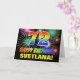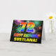 Le devant de cette carte de voeux colorée, amusante et joyeuse sur le thème de l'anniversaire comporte un grand nombre de "72" et le message "HAPPY BANTHDAY", tous deux ayant un dégradé de spectre arc-en-ciel inspiré coloré motif, ainsi qu'un nom de destinataire personnalisé jaune gras. Le devant est également orné d'un motif arrière - plan multicolore inspiré par l'allure d'un feu d'artifice festif. L'intérieur comporte un message d'anniversaire personnalisé, ou pourrait être effacé et laissé vide si un message doit être écrit à la main à la place. Une carte d’anniversaire personnalisée colorée comme celle-ci pourrait être une façon amusante de reconnaître le soixante-dix-deuxième anniversaire de quelqu’un. [~Z0000471]
