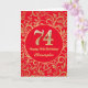 Carte 74e anniversaire Motif Floral rouge et or