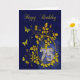 Une carte d'anniversaire très élégante à customiser. Des papillons dorés et des feuillages roses encadrent un numéro orné de bijoux.