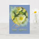 Une carte élégante avec Primroses sur un arrière - plan bleu.