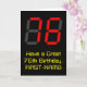 La façade de cette carte de voeux amusante et nerveuse à thème d'anniversaire comporte un grand numéro "76" avec un affichage numérique à sept segments rouge inspiré, ainsi que le message "Avoir un grand 76e anniversaire", et un nom personnalisé, sur un arrière - plan de couleur noire. L'intérieur comporte un message d'anniversaire personnalisé, ou pourrait être effacé et laissé vide si un message doit être écrit à la main à la place. Une carte d'anniversaire personnalisée comme celle-ci pourrait être une façon amusante d'envoyer des voeux d'anniversaire à quelqu'un qui célèbre son soixante-seizième anniversaire. [~Z0000386]