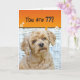 Mignonne poodle brun avec marguerites sur fauteuil en osier pour 77ème anniversaire, Texte peut être changé pour n'importe quel âge anniversaire.