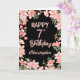 Carte 7e anniversaire Peach rose Aquarelle Florale Noir