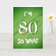 80 Alors, quelle carte de citation drôle pour 80e anniversaire. Une grande carte de voeux pour quelqu'un célébrant son 80e anniversaire. Il vient avec une citation drôle I`m 80 alors quoi, et est parfait pour une personne avec un sens de l'humour. Customisez le texte à l'intérieur ou effacez-le.