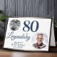 80 & Legendary 80th Birthday Card pour lui avec 2 Photos - Black & Silver Metallic Style. Célébrez son jalon en audace avec cette carte d'anniversaire "80 & Légendaire" de 80e anniversaire. Conçue avec un look masculin très marqué dans les effets métalliques noirs et argentés (imprimés, pas de vrai papier d'aluminium), cette carte est parfaite pour les papas, grands-pas, oncles ou amis. Personnalisez facilement avec deux de vos photos préférées (idéal pour les photos anciennes et nouvelles) et ajoutez du texte personnalisé pour en faire un souvenir unique qu’il chérira.