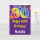 80e Anniversaire Colorful Rainbow Fireworks Purple Card avec nom personnalisé. Pour plus de personnalisation, cliquez sur le bouton "Customiser" et utilisez notre outil de conception pour modifier ce modèle.