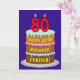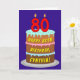 Le devant de cette carte de voeux amusante et joyeuse à thème d'anniversaire présente une représentation d'un gâteau d'anniversaire à trois niveaux avec des bougies en forme de chiffres sur le dessus montrant le numéro "80", avec le message "HAPPY 80TH BIRTHDAY", et un nom de destinataire personnalisé. L'intérieur comporte un message de voeux d'anniversaire modifiable, ou peut-être pourrait-il être effacé et laissé vide si un message doit être écrit à la main à la place. Une carte de voeux d’anniversaire customisée et optimiste comme celle-ci pourrait être envoyée pour célébrer le quatre-vingtième anniversaire de quelqu’un. [~Z0000620]