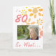 Une grande carte de voeux d'anniversaire personnalisable pour une femme célébrant son 80e anniversaire. Il est livré avec une citation drôle et motivationnelle I`m 80 So What.., et est parfait pour une personne avec un sens de l'humour. Motif de fleurs dans un look aquarelle. Il est livré avec une photo que vous pouvez changer. Vous pouvez également modifier le numéro d'âge et la couleur de l'arrière - plan.