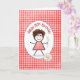 Baguette fille avec cheveux, lunettes rouges, robe en vichy, et tenir des marguerites sur un motif en vichy rouge et blanc pour 80ème anniversaire. Le numéro d'âge peut être modifié.