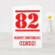 Ce design amusant de carte de voeux d'anniversaire comporte un grand numéro rouge "82" avec un look inspiré par un tampon en caoutchouc, en plus du message de voeux d'anniversaire "HAPPY BANTHDAY", et un nom personnalisé sur le devant. L'intérieur a un message de voeux d'anniversaire personnalisé, ou peut-être peut-être être effacé et laissé vide si un message doit être écrit à la main à la place. Une carte de voeux d'anniversaire personnalisée et amusante comme celle-ci pourrait être une façon amusante de transmettre des voeux d'anniversaire à quelqu'un qui célèbre son quatre-vingt-deuxième anniversaire. [~Z0000524]