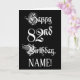 L'avant de cette conception de carte de vœux de luxe et somptueuse à thème d'anniversaire comporte le message « Joyeux 82e anniversaire » en élégante police de caractère script, sur un fond de couleur noire. L'intérieur contient un message d'anniversaire personnalisé, ou pourrait éventuellement être laissé vierge si un message doit être écrit à la main à la place. Une carte de vœux d'anniversaire personnalisée et élaborée comme celle-ci pourrait être un moyen respectable de transmettre des vœux d'anniversaire à quelqu'un qui célèbre son quatre-vingt-deuxième anniversaire.