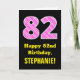 Carte 82e anniversaire : Pink Stripes and Hearts "82" +