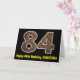 La façade de cette carte de voeux rustique et amusante d'anniversaire avec un grand nombre de "84" avec un motif de style imitation grain de bois, avec le message "Happy 84th Birthday," et un nom modifiable. L'intérieur comporte un message de voeux d'anniversaire personnalisé, ou peut-être pourrait-il être effacé et laissé vide si un message doit être écrit à la main à la place. Une carte d'anniversaire personnalisée comme celle-ci pourrait être une façon amusante d'envoyer des voeux d'anniversaire à quelqu'un qui célèbre son quatre-vingt-quatrième anniversaire. [~Z0000431]
