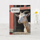 Une chèvre de la ferme qui sort d'une grange vitrée rustique avec une bulle vocale pour un 85ème anniversaire. Tout le texte peut être modifié.