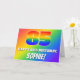 La façade de cette carte de voeux à thème d'anniversaire optimisée et amusante comporte un grand nombre de "85" avec un motif multicolore inspiré du spectre arc-en-ciel, ainsi que le message "HAPPY 85th BIRTHDAY", et un nom de destinataire personnalisé. L'arrière - plan à l'avant a également un motif excitant de gradient de spectre arc-en-ciel. L'intérieur comporte un message de voeux d'anniversaire personnalisable, ou peut-être pourrait-il être effacé et laissé vide si un message doit être écrit à la main à la place. Une carte de voeux d'anniversaire colorée et personnalisable comme celle-ci pourrait être une façon amusante de donner des voeux d'anniversaire à quelqu'un qui célèbre son quatre-vingt-cinquième anniversaire. [~Z0000585]