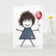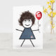 Carte 85e Anniversaire Stick Girl avec ballon rouge