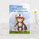 Faites de votre petit-fils un personnage spécial pour le 8e anniversaire avec cette carte de baseball personnalisée ! Un singe amusant, avec une chauve-souris et un gant, est prêt pour le jeu contre un ciel bleu vif. Customisez le front avec son nom pour créer un souvenir unique qu’il aimera. Le message ludique à l'intérieur ajoute à l'excitation, ce qui en fait un choix gagnant pour tout joueur de baseball de 8 ans !