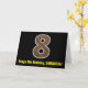La façade de cette carte de voeux amusante et rustique d'anniversaire avec un grand nombre de "8" avec un motif d'apparence imitation grain de bois, avec le message "Happy 8th Birthday," et un nom personnalisé. L'intérieur comporte un message de voeux d'anniversaire customisé, ou peut-être pourrait-il être effacé et laissé vide si un message doit être écrit à la main à la place. Une carte d'anniversaire personnalisée comme celle-ci pourrait être une façon amusante d'envoyer des voeux d'anniversaire à quelqu'un qui célèbre son huitième anniversaire. [~Z0000431]