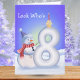 A lively winter moment unfolds for an eighth birthday. A smiling snowman shows off the snowy “8” he’s shaped just for him, topped with a festive cupcake and candle to mark the celebration. Light colors, fun textures, and a cheerful mood create a playful seasonal scene—perfect for a child who enjoys snowy adventures, bright winter days, and charming holiday artwork.