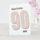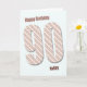 Une carte de 90ème anniversaire très moderne. Cette carte est vraiment fabuleuse. Grandes lettres à rayures modernes sur un arrière - plan bleu. Personnaliser pour votre propre message unique.