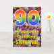 L'avant de cette carte de voeux d'anniversaire colorée, d'inspiration nature et rustique comprend un grand nombre de "90" ayant un motif inspiré par un gradient de spectre arc-en-ciel. Il comporte également le message "Joyeux 90e anniversaire", et un nom personnalisé. L'avant est ornée d'un arrière - plan représentant des feuilles d'automne tombées rustiques. L'intérieur comporte un message d'anniversaire personnalisé, ou pourrait être effacé et laissé vide si un message doit être écrit à la main à la place. Une carte d'anniversaire comme celle-ci pourrait être une façon amusante d'envoyer des voeux d'anniversaire à quelqu'un qui célèbre son quatre-vingt-dixième anniversaire. [~Z0000384]
