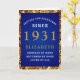 Carte 90e anniversaire personnalisé 1931 Blue Gold Elega