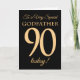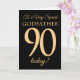 Une carte d'anniversaire chic 90e pour un "Parrain Très Spécial", avec un numéro 90 composé de numéros à effet or et le mot "Parrain", à effet or, sur un arrière - plan noir. Le message intérieur, que vous pouvez modifier si vous le souhaitez, est "Joyeux anniversaire"