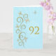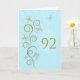 92e anniversaire avec des papillons dorés. Parchemin fleuri aux fleurs stylisées et aux papillons délicats. Une magnifique carte d'anniversaire. Voir toute la gamme de cartes pour les âges et les relations dans mon magasin. Des papillons dorés à partir de délicats rouleaux de travail flutter autour de cette belle et élégante carte d'anniversaire
