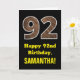 Carte 92e anniversaire : Nom, Faux Wood Grain Motif "92"