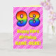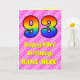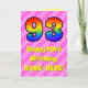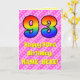 L'avant de cette carte de voeux amusante et optimisée du 93ème anniversaire a un grand numéro "93" avec un motif coloré inspiré de l'apparence d'un arc-en-ciel. Il contient également le message "Happy 93rd Birthday," et un nom de destinataire modifiable. L'arrière - plan de l'avant est doté d'un motif de rayures rose foncé et rose clair, aux coeurs roses aimés. L'intérieur comporte un message de voeux d'anniversaire modifiable, ou peut-être pourrait-il être effacé et laissé vide si un message doit être écrit à la main à la place. Une carte d'anniversaire personnalisable comme celle-ci pourrait être une façon amusante d'envoyer des voeux d'anniversaire à quelqu'un qui célèbre son quatre-vingt-treize anniversaire. [~Z0000416]