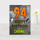 Le devant de cette carte de voeux d’anniversaire Hallowe’en éffrayante et effrayante comporte un grand numéro "94" et le message "HAPPY BANTHDAY", ainsi qu’un nom modifiable. Il y a aussi des représentations d'une chauve-souris et d'un fantôme sur le devant. L'intérieur comporte un message de voeux d'anniversaire modifiable, ou peut-être pourrait-il être effacé et laissé vide si un message doit être écrit à la main à la place. Une carte d’anniversaire personnalisable comme celle-ci pourrait être une façon amusante de reconnaître le quatre-vingt-quatorzième anniversaire de quelqu’un qui tombe aussi le 31 octobre (Halloween). [~Z0000547]