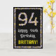 La façade de cette carte de voeux amusante et inspirée de la nature, comporte le message "Happy 94th Birthday" et un nom de destinataire modifiable. Le grand numéro "94" plus la bordure à l'avant se compose d'icônes de fleurs. L'intérieur a un message d'anniversaire personnalisé, ou peut-être peut-être être effacé et laissé vide si un message doit être écrit à la main à la place. Une carte de voeux d'anniversaire fleurie et modifiable comme celle-ci pourrait être une façon amusante de transmettre un message d'anniversaire à quelqu'un qui célèbre son quatre-vingt-quatorzième anniversaire. [~Z0000648]