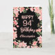 Carte 94e anniversaire Peach rose aquarelle Floral Noir